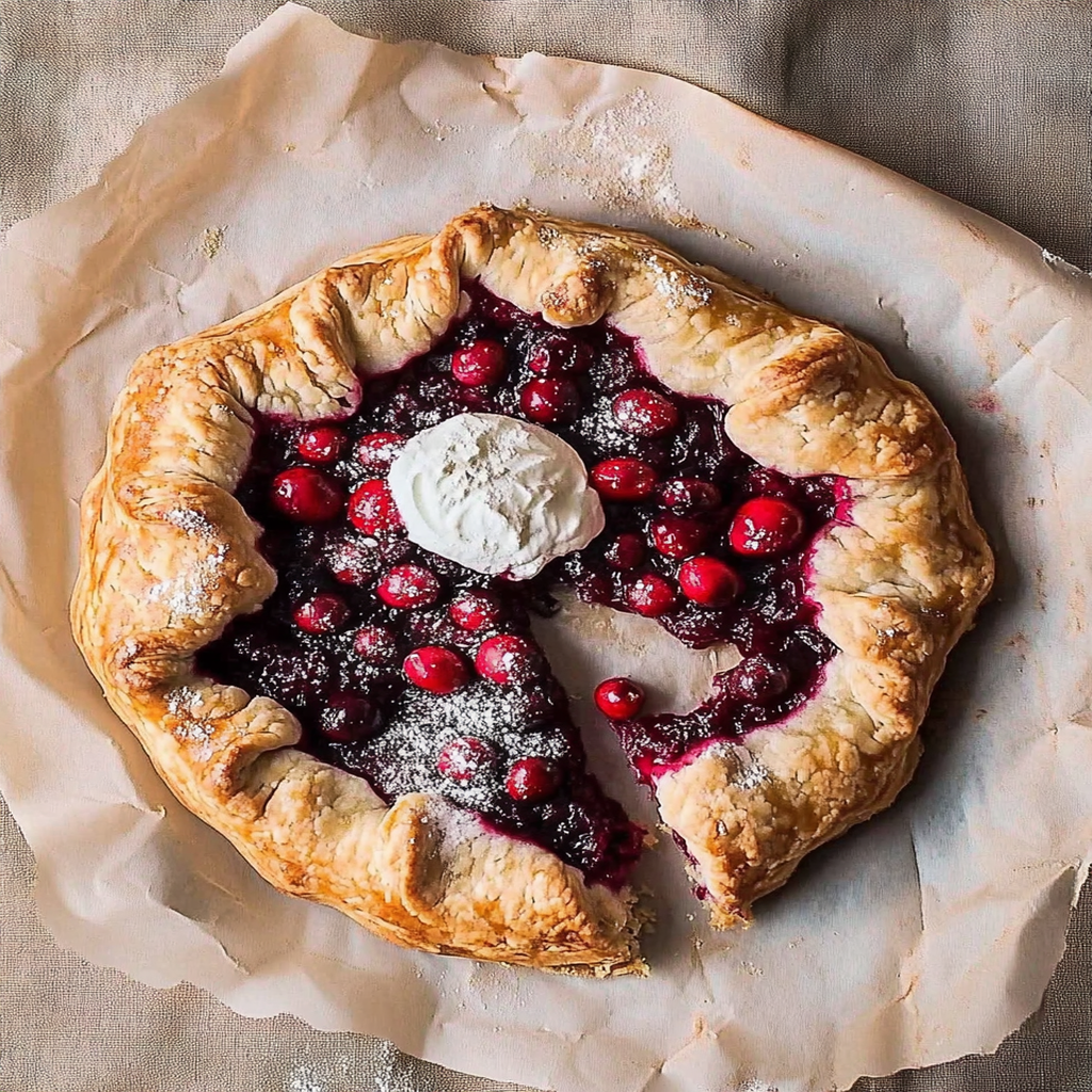 A Rustic Cranberry Galette is a simple, freeform pie that features fresh cranberries wrapped in a flaky pastry crust. This dessert highlights the tartness of cranberries, balanced by a hint of sweetness from sugar and spices. Unlike traditional pies, galettes have an open-faced design, making them easier to prepare and serve. vegan dessert alternative You can customize them with various fruits and spices, but the cranberry version is especially popular during the fall and winter months. Enjoy it warm with a scoop of vanilla ice cream or a dollop of whipped cream for added indulgence.