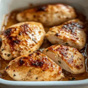 Place the seasoned chicken breasts in the prepared baking dish. Pour that glorious marinade all over them like they’re getting a spa treatment—because they deserve it! Let it sit for about 15 minutes while you tidy up or set the table (or plot your next big culinary adventure).
